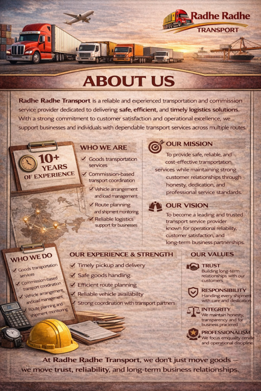 At Radhe Radhe Transport, we don’t just move goods — we move trust, reliability, and long-term business relationships.